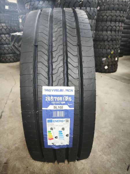Wyjątkowe opony na osie prowadzące stosowane w ruchu lokalnym i międzynarodowym. Opony Royal Black SL102 charakteryzują się innowacyjną mieszanką, która poradzi sobie nawet w bardzo trudnych warunkach pogodowych. Czy to na suchej, mokrej, czy też pokrytej śniegiem jezdni SL102 gwarantuje znakomitą trakcję przy równomiernym zużyciu, a także znakomity przebieg. Środkowe rowki bieżnika posiadają podwyższone elementy, które zapobiegają klinowaniu się kamieni w oponach.